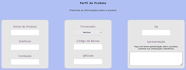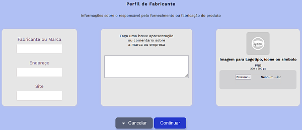 Semelhante a criação do perfil de Fabricante, devemos preencher alguns dados dos formulários.